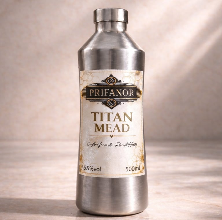 Prifanor's mead in its sleek titanium bottle is a game changer—smooth, rich, and unforgettable.